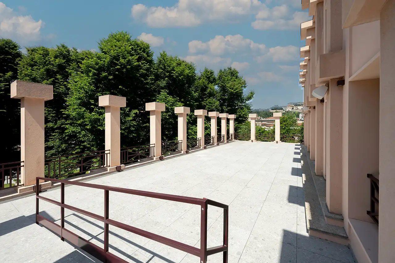 The Allianz Event Hall, completely renovated following the restoration of the Donizetti Theater, is equipped to meet both aesthetic and functional quality. The space, lined with modern components that keep the style of the Donizetti Theater intact, also boasts a terrace with a breathtaking view of Upper Town.