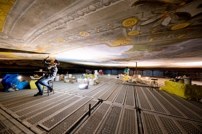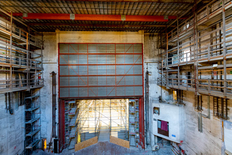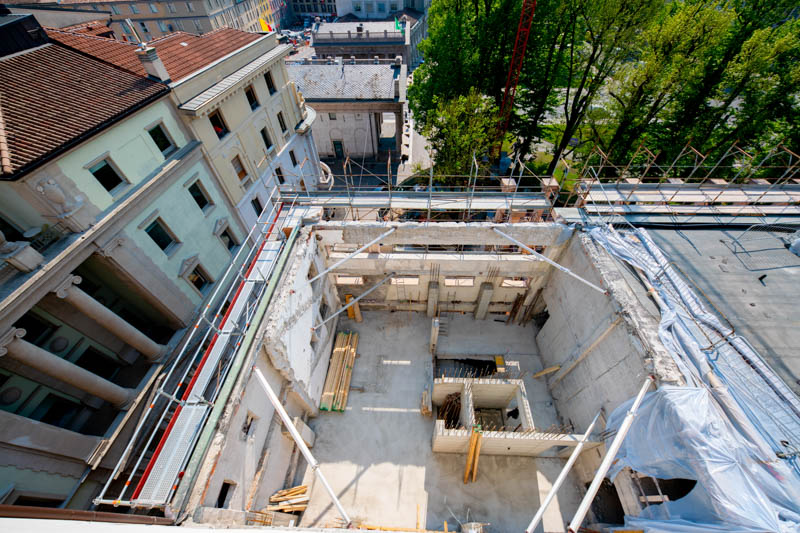 Different points of view to show the vastness and diversity of the works within the building site. Materials, structures, and illustrations used in the embellishment of the city Theatre.