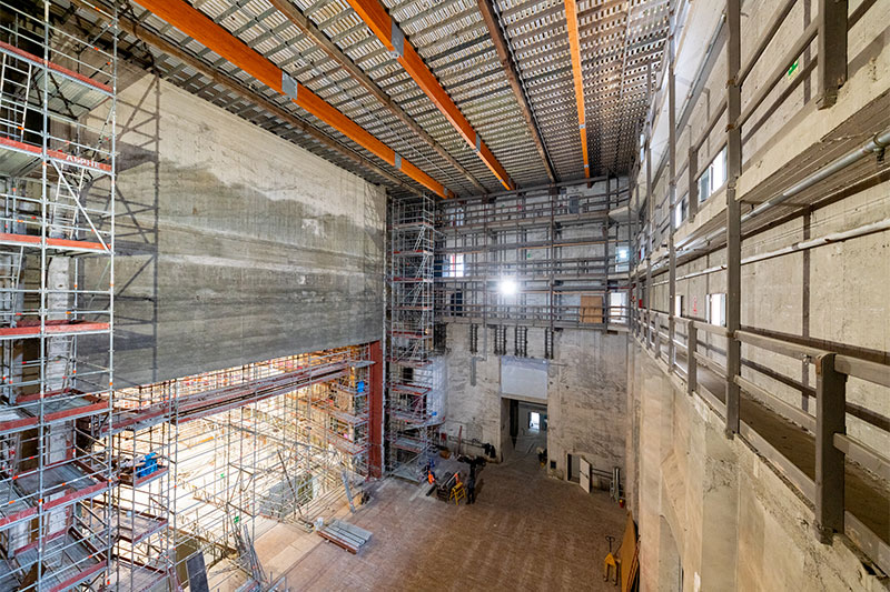 Rearrangement of dressing rooms and stage service spaces so as to restore the distributional and functional logic that the disorganized interventions carried out in the past had compromised. It was therefore necessary to demolish the body of the building on the east side of the stage tower and the subsequent construction of the new body of the building, which now houses 4 floors of dressing rooms, the tailor’s shop and some technical rooms.