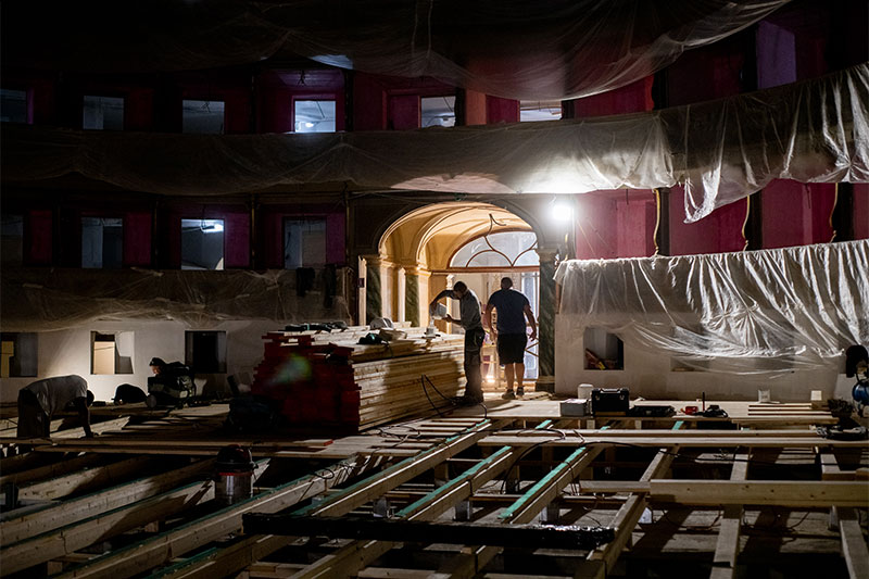 It took nearly three years to complete the restoration of Bergamo’s Donizetti Theater, which began on Feb. 5, 2018, and was completed in November 2020 (with only the blockages caused by the pandemic and the staging at the theater site of the opera L’ange de Nisida in November 2019 and with minimal changes to the original project).