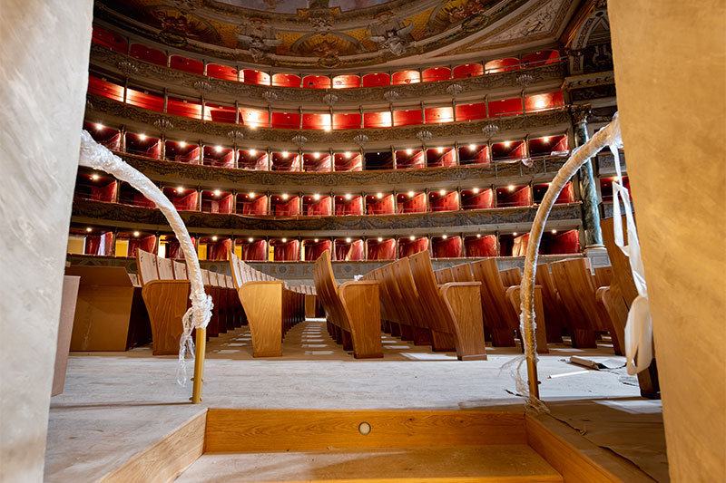Optimization of theater room acoustics . Nel contesto del restauro grande attenzione è stata data al miglioramento della qualità acustica della sala teatrale.