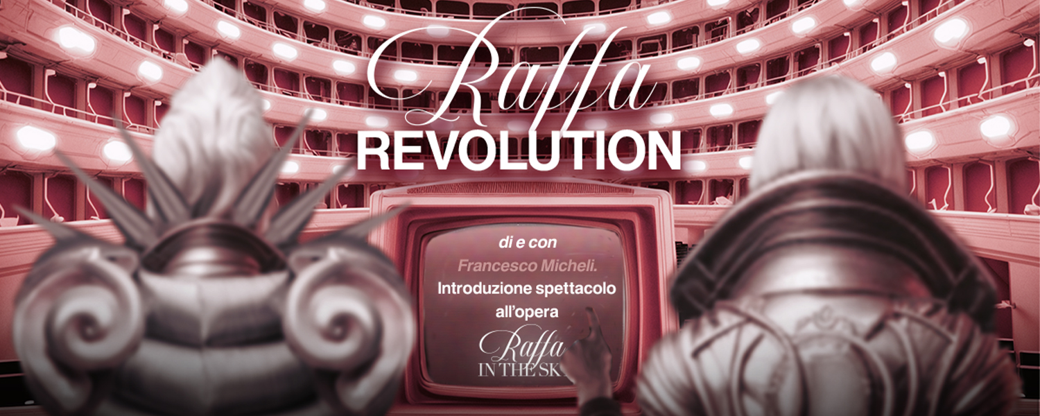 Raffa in the Skyè un’opera, una vera opera lirica, che si ispira alla figura iconica di Raffaella Carrà, grande protagonista della televisione italiana ma anche personaggio internazionale. Non è una biografia in musica ma il racconto di una carriera artistica che ha accompagnato, e talvolta stimolato, le trasformazioni della società italiana dell’ultimo mezzo secolo. Attraverso la straordinaria esperienza della Carrà, l’opera si propone di riflettere anche sul ruolo dell’artista nella società, sul valore e sull’uso dell’arte, sul ruolo della televisione e degli altri media, senza dimenticare le canzoni che Raffaella ha interpretato, in un racconto che percorre la strada del surreale e del paradosso per parlare a tutti noi.