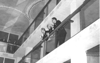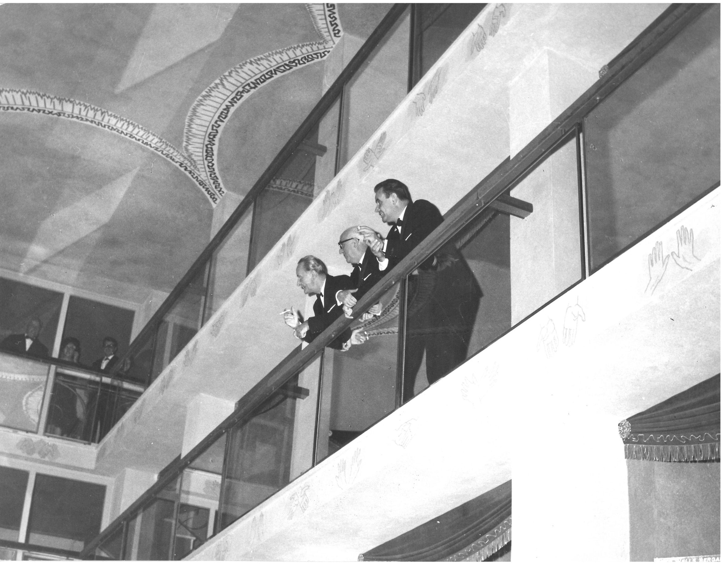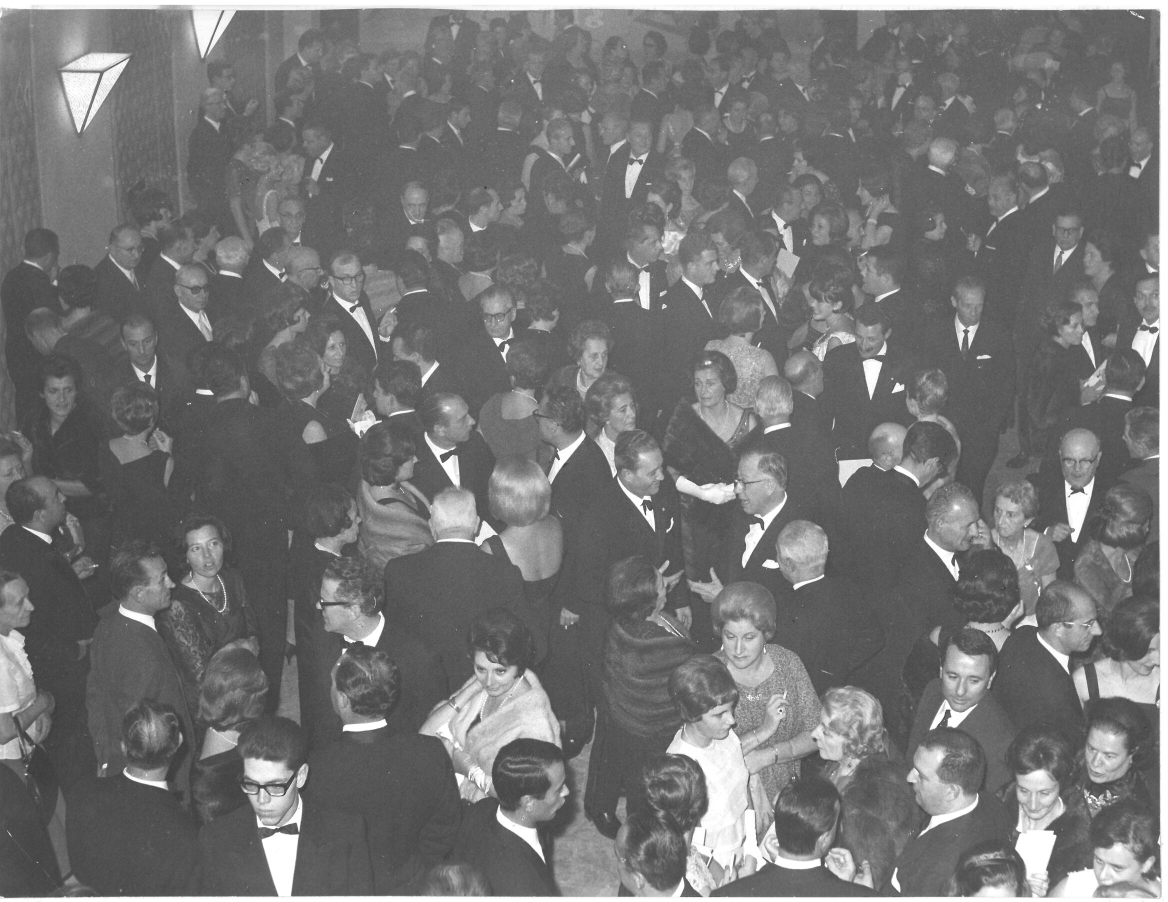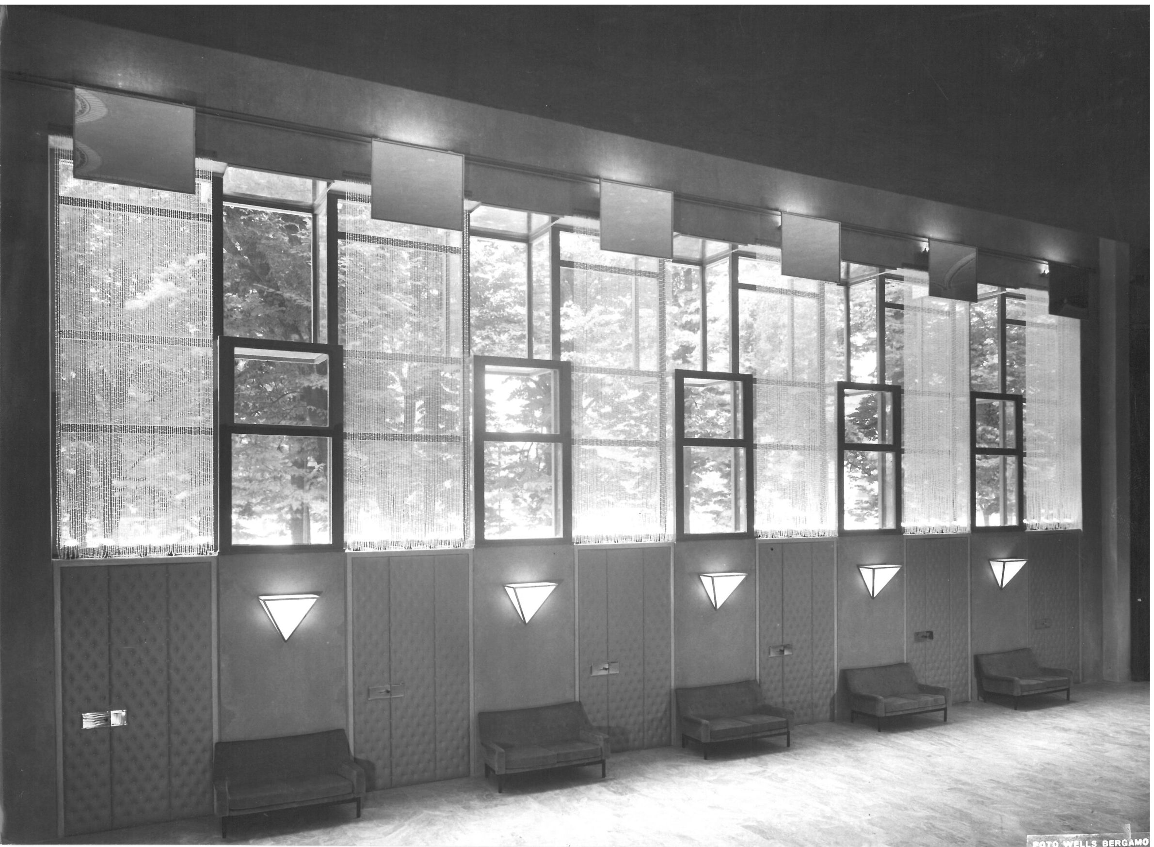 Quando venne costruito il Teatro Donizetti, l’allora Teatro Riccardi (dal nome del suo costruttore), questo ambiente non era stato predisposto e non è esistito per lungo tempo. È stato, infatti, realizzato, su progetto dell’architetto Giuseppe Pizzigoni, nel 1964 al termine di alcuni anni di ristrutturazione. L’inaugurazione fu grandiosa: in scena c’era la Lucia di Lammermoor di Gaetano Donizetti, a cantare Renata Scotto e alla direzione Gianandrea Gavazzeni, a cui negli anni ’90 questo luogo sarà poi intitolato. Per tutti fu indiscutibile la qualità dell’esecuzione musicale, per la protagonista nel terzo atto le chiamate da parte del pubblico furono la bellezza di quindici e per le ovazioni fu necessario un quarto d’ora. Pellicce, stole, boleri, la gara tra le dame diede da scrivere ai giornalisti. Per la rentrée al Donizetti molti curiosi si addossarono fuori le entrate principali ad osservare, e commentare, l’ingresso dei proprietari di palco e del pubblico di platea. Nelle serate d’opera, l’eleganza delle signore era un biglietto da visita delle famiglie e quella volta tutte cercarono una toilette confezionata secondo i più attuali dettami della moda, capace di farsi ammirare per una superiore eleganza. Qualche abito giunse all’ultimo minuto persino da Parigi! Impeccabili gli uomini in smoking con il viso rasato di fresco. Era un linguaggio condiviso e rispettato. Quella sera tra gli spettatori si scorsero molti volti noti, su tutti Franca Valeri che indossò un abito molto particolare: nero con collo bianco alto e inamidato, maniche lunghe e polsi bianchi, una mise molto simpatica. Allo spettacolo presenziarono anche molti milanesi: intellettuali, esperti, critici, indossatrici, tutta gente alla moda e qualcuno disse: «Stasera Bergamo fa concorrenza alla Scala».
