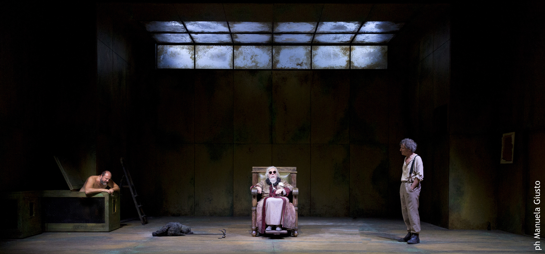 Quando si arriva a comprendere Beckett? Quando si smette di capirlo, per arrivare al cuore di “Finale di partita” bisogna pensare ed agire all’incontrario, non seguire la logica, ma il suo opposto. All’inizio di “Finale di partita”, quando in sala scende la notte e si accende il palcoscenico, dentro ad ogni spettatore si accende una voce: “Signori e signore benvenuti nel mondo “Beckettiano”, nella commedia dell’assurdo dove nulla ha un senso”. “Finale di partita” è una navicella spaziale venuta da un pianeta sconosciuto, approdata, forse, sulla terra per sbaglio, ma pronta a rapire chiunque gli si sieda vicino e trasportare la platea nell’assurdo e sconosciuto profondo mondo degli uomini. Andrea Baracco dirige un viaggio – capolavoro nell’anima umana, andando a rispolverare ed a scoprire i suoi angoli più sconosciuti, le paure, i tormenti, le tristezze ed i bisogni di una società incapace di trovare una via d’uscita, sempre più persa nella solitudine dell’incomprensibile ed enorme labirinto della vita. Nell’adattamento del testo “Beckettiano” c’è anche spazio per un’amara riflessione sull’incapacità dell’uomo di creare di rapporti, sulla sua incapacità di comunicare. Hamm (Glauco Mauri), Clov (Roberto Sturno), Nagg (Mauro Mandolini) e Nell (Marcella Favilla) vivono prigionieri tra quattro mura d’acciaio, ognuno nella sua gabbia di solitudine e tristezza, forse unici sopravvissuti di chissà quale catastrofe. Tutti e quattro sono costretti a convivere e vivono i loro giorni sopportandosi, ma dentro di loro hanno un gran bisogno di affetto, di comunicare, di uscire dalle loro gabbie, raccontarsi ed essere ascoltati. Il loro è lo specchio dello strano rapporto che l’uomo ha prima di tutto con se stesso e poi con gli altri, del misterioso rapporto padre-figlio / madre-figlio / genitori-figli, dell’eterna ed infinita lotta tra bene-male, di quella doppia personalità che sta dentro ognuno di noi che porta la nostra anima ad essere in bianco e nero, del “ti odio, ma non riesco a fare a meno di amarti” (odio-amore) e del dilemma dentro ognuno di noi vado-resto. La storia ruota attorno ai personaggi di Hamm (un grandissimo Glauco Mauri) e Clov (un sorprendente Roberto Sturno). Il primo è un vecchio burbero brontolone, con dentro al cuore una grandissima voglia di comunicare, ma incapace di farlo fino in fondo. Attraverso i suoi discorsi “senza senso” arriverà a dare un piccolo senso alla sua vita, accetterà e riuscirà a scrivere il suo “finale di partita”. “Tocca a me… la mossa giocare… vecchio finale di partita persa, finito di perdere” (Hamm in “Finale di partita”). Clov vorrebbe andarsene, ma non ci riesce, “…fuori è la morte” “…al di là c’è l’altro inferno…”, oltre quella prigione c’è l’ignoto, un mondo che non conosce, che non è nemmeno sicuro esista ed allora meglio rimanere lì, rinchiuso, al sicuro tra quelle quattro mura d’acciaio. “Finale di partita” è un viaggio nell’anima umana, lascia il segno dentro e quando alla fine la realtà, quella di tutti i giorni verrà a prenderci per riportarci nel nostro mondo, ogni spettatore la seguirà con la consapevolezza, spero di conoscersi un po’meglio e che quel viaggio sia servito a fare un passo avanti, a diventare un po’ migliori. “Finale di partita” è anche una partita a scacchi tra Glauco Mauri e Roberto Sturno, tra Maestro ed allievo, fianco a fianco per 100 minuti di spettacolo, la loro sarà una partita senza vincitori né vinti. Il mio “finale di partita”, il mio grazie più grande va a Glauco Mauri un “bambino” di 89 anni che, dopo aver passato una vita sul palcoscenico, è ancora capace di emozionarsi, stupire, provare, sull’applauso finale gli si illuminano ancora gli occhi davanti a quella Grande Magia chiamata teatro. Grazie e complimenti!