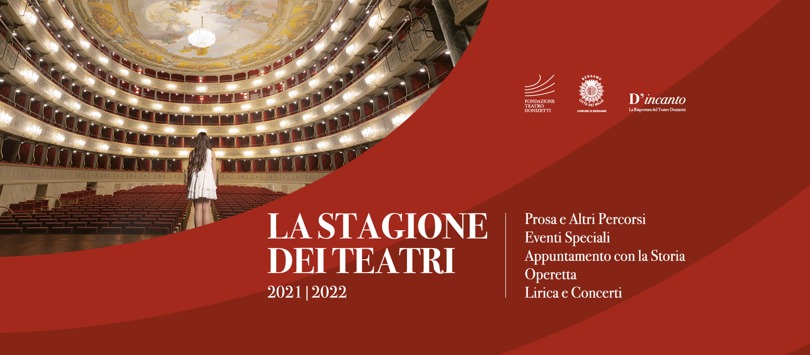 La Fondazione Teatro Donizetti, con il Comune di Bergamo, presenta La Stagione dei Teatri 2021/2022: Prosa, Altri Percorsi, Eventi Speciali, Operetta e l’inedita sezione Appuntamento con la Storia. Una stagione che prende avvio da dove la precedente si era forzatamente fermata e che dovrà tenere necessariamente conto dell’evoluzione della pandemia e dei provvedimenti per fronteggiarla, inclusa la riduzione della capienza dei teatri che la ospiteranno. Sarà comunque una Stagione ricca, variegata, che si svolgerà da dicembre 2021 a maggio 2022 al Teatro Donizetti e al Teatro Sociale.