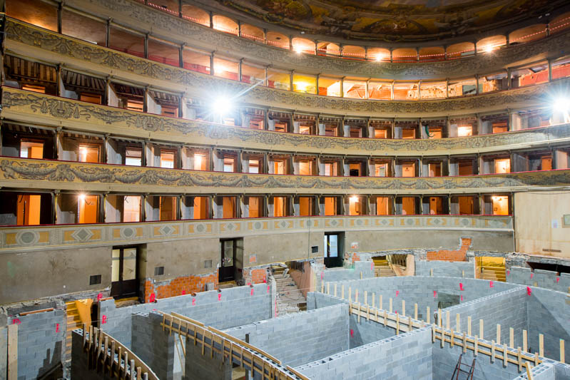 I lavori si stanno concentrando sulla realizzazione dei nuovi spazi di servizio sotto la platea, sulla nuova torre scenica e sugli spazi accessori del teatro.