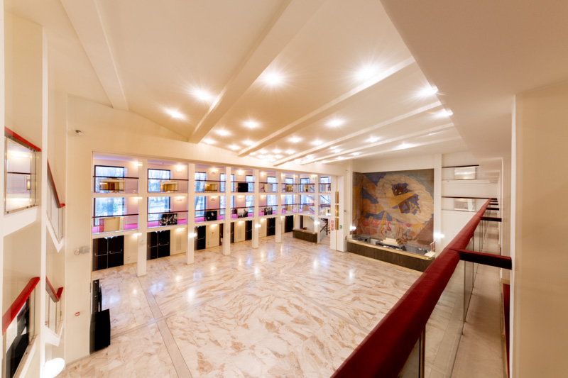 Il Foyer del Teatro Donizetti, altrimenti noto come Ridotto Gavazzeni, è uno spazio adibito all’accoglienza del pubblico durante gli intervalli degli spettacoli. L’ampia ed elegante sala, impreziosita da un affresco e da una raffinata illuminazione, è dotata di un angolo bar e risulta essere uno spazio particolarmente versatile, adatto ad ospitare eventi di vario genere: ricevimenti, mostre, conferenze e incontri.